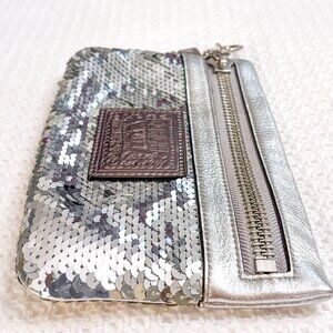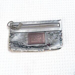 Coach Poppy Silver Sequin Wristlet Purse Handbag Wallet Clutch