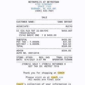 Receipt attached to show legitimacy