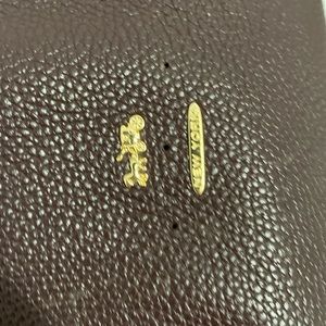 Elegant Coach hobo bag. Rich purple color. Sleek design with gold accents.