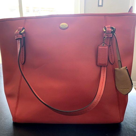 Coral coach purse, barely used. Dimensions are 16"x12"x4.5"
