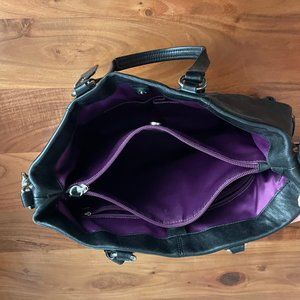 Coach - Great Condition - Like new - Black leather over the shoulder and crossbody purse. Inside - Satin - purple. Silver hardware.