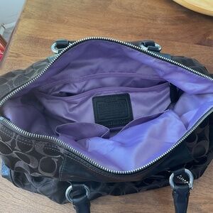 Coach Purse, brown with lilac lining. Gently used. Cloth & leather