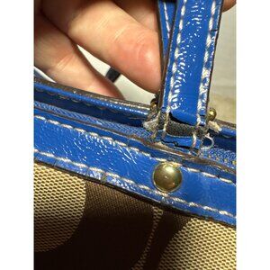 Coach Purse Khaki Signature Blue Stripe Top Zip Tote Shoulder Bag F19046