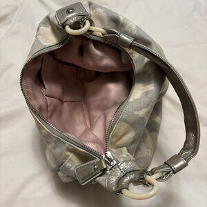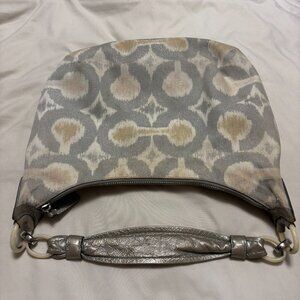 Coach Purse Kristin Op Art Ikat Print Hobo Bag Silver Gray Multi-color