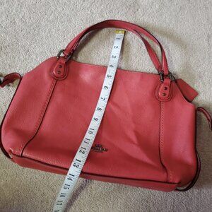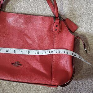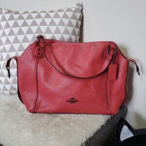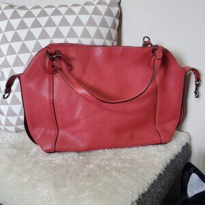 Elegant red leather bag. Features a sleek design. Perfect for any occasion.