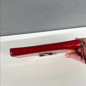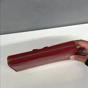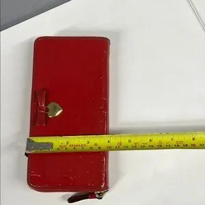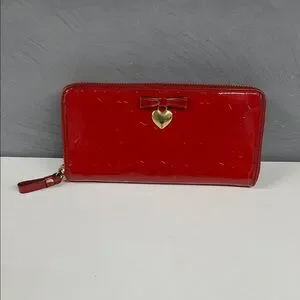 Elegant red wallet with a heart and bow detail. Ideal for stylish organization.
