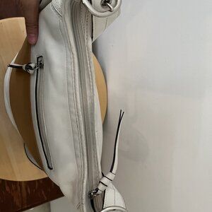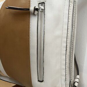 Coach Rugby Duffle Leather Bag White and Tan Stripes (relisted)