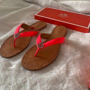 Coach SARA Pink Leather Sandals Flip Flops Size 8M Brand New