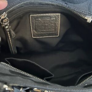 In amazing condition. Coach black satchel with reptile stripe. Style E060-10262. With dust bag. Inside one zip pocket and 2 slots. Very roomy.