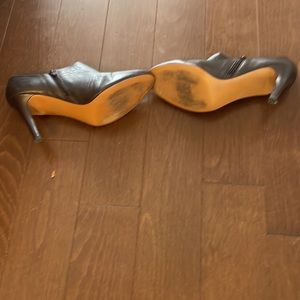 These beautiful brown leather shoes from Coach are perfect to wear in the fall with a pair of jeans. The heel is aprox 2.5 inches, and there is a small zipper on the inside to help you get them on. These have been worn a handful of times, there is some slight damage on both of the heels from the subway grates ( if you know, you know 😖) but otherwise I’m great condition