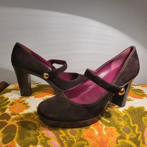 Coach Shoes Brown Suede Mary Jane Heels Platform Unique