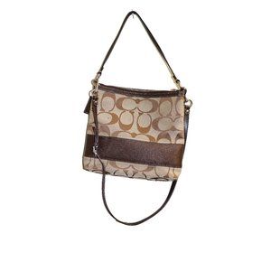 Coach, Brown, Monogram C, Top Zip, Inside Pockets, Short and longer Strap, Canvas, Leather Trim, Purse, Bag