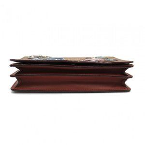 Signature coated canvas and refined calf leather detail| Eight credit card slots| Full-length bill compartment| Inside zip pocket| Snap closure| Outside slip pocket| Detachable chain strap with 23" drop for shoulder or crossbody wear| 8" (L) x 4 3/4" (H) x 2 1/4" (W) Enriched by multi-coloured, sequined patches and metal trimmings. Very good condition. Worn a few times. Few little marks/scratches.