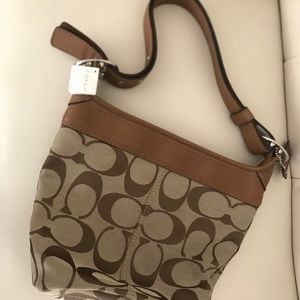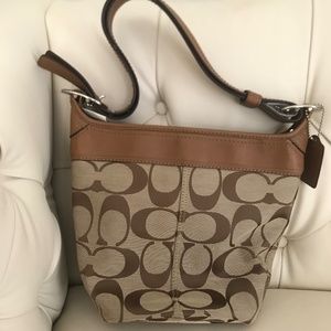 Brand New Coach Bucket Handbag. Never been used. Excellent Condition. Small scratch on leather as indicated on picture 3. No pulls, scuffs, rips, etc.
