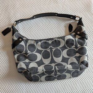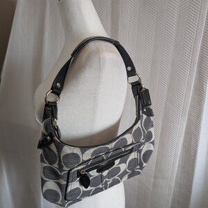Coach Signature Jacquard Shoulder Bag Grey Black Patent Trim Style 13291 Y2K