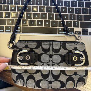 Coach Signature Leather Wristlet Pouch – Black & Grey Y2K Mini Purse