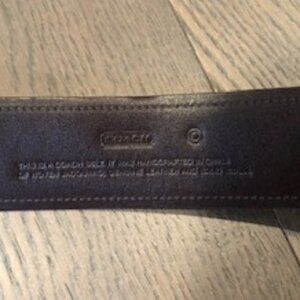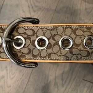 Coach Signature Logo Leather & Woven Jacquard Belt Silver Metal Hardware Tan L