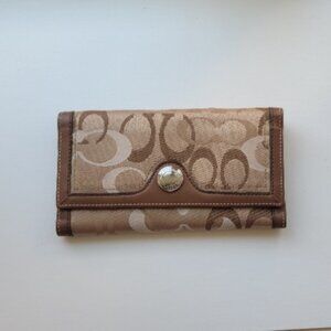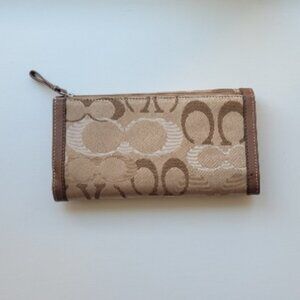 ✨Chic, beige monogram Coach wallet in very good condition. This wallet is on the larger size, making it ideal to keep all of the essentials with plenty of room for all of your cards, bills, and coins.