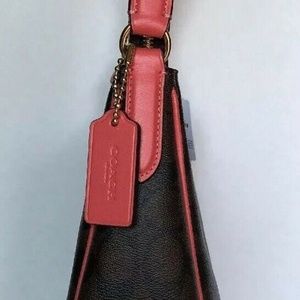 Coach Signature Zip Shoulder Bag Brown Coral F2920