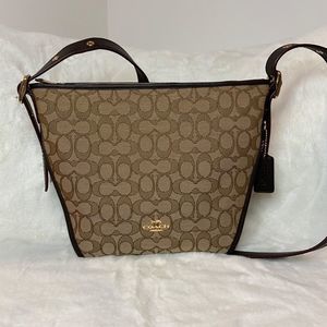 Coach Small Duflette in Signature Jacquard Li/Khaki/Brown Brand New with Tags