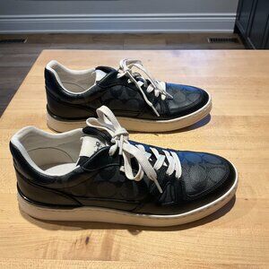 Signature coated canvas and leather upper, Fabric lining and footbed, EVA and rubber outsole. These shoes have been worn once. Womens size 11 or mens size 9. Classic style and Coach comfort