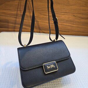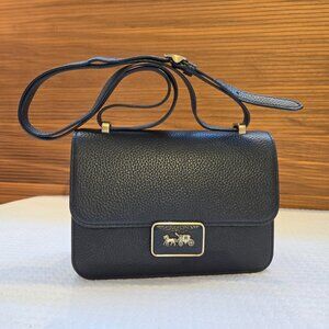Elevate your style with the Coach Soft Pebble Black Leather Alie Shoulder Bag with Brass Hardware.