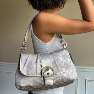 Coach Soho Hobo Shoulder Hand Bag in silver jacquard Print