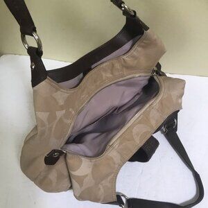 Coach Soho Lyn Signature Leather CC Hobo Shoulder Bag Zip Pockets Neutral Tote