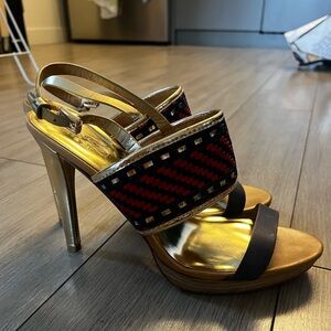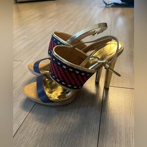 Coach Steffi High Heel Sandals in Red / Navy