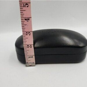 Black sunglasses case Outside has imprinted monogram Interior is black as well with gold monogram lettering