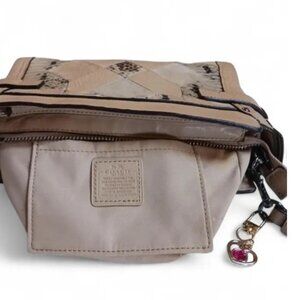A textured statement piece that blends neutral tones with standout details — stylish, versatile, and unmistakably Coach.