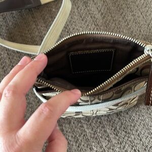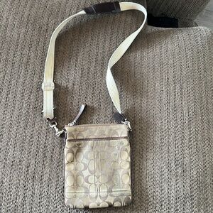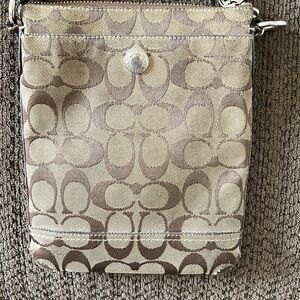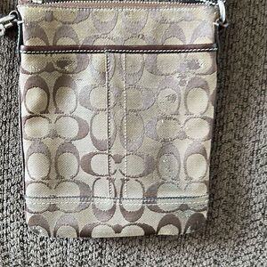 Coach Tan and Brown Crossbody Bag with Signature Monogram