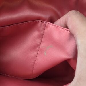 This Coach cosmetic bag showcases a vibrant blend of tan and orange hues, adorned with a lively floral pattern. Its dome shape and zip closure make it perfect for storing makeup or small personal items, combining functionality with a touch of elegance.
