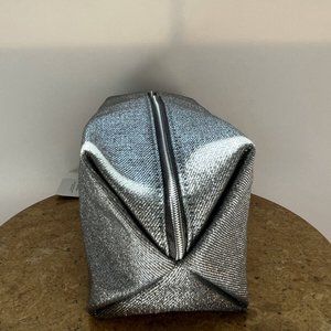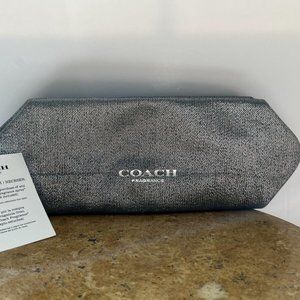 Coach Toiletry Pouch, Makeup & Cosmetic Bag, Silver Shimmering Large Zipper NWT