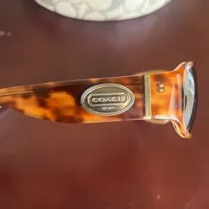 Stylish Coach sunglasses with a tortoise shell design 🕶️ Coach case included!