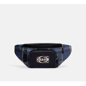 Coach Track Belt Bag With Plaid Print And Coach Stamp Unisex