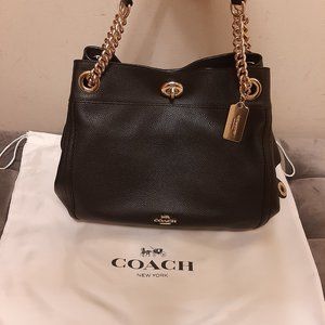 Lovely pebble leather bag, authentic Coach Edie turnlock bag like new condition with gold hardware and dust bag