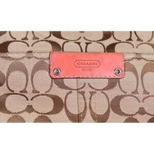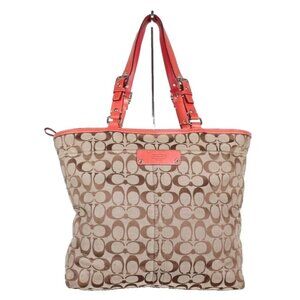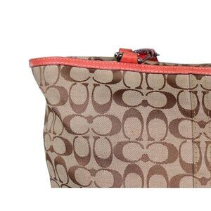 Coach Unisex Large Tan Orange Signature Hamptons Book Tote Bag Monogram Purse
