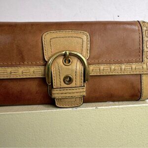 Coach Vintage Soho Leather Wallet Topstitch Neutral Buckle Logo Clutch Organizer