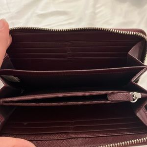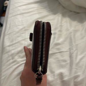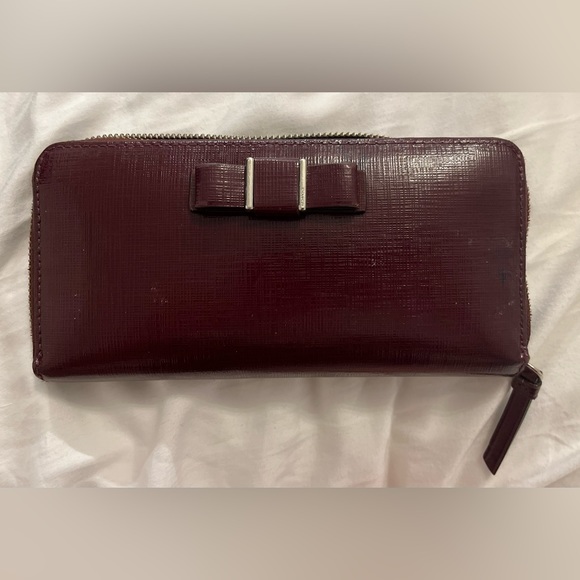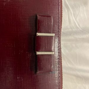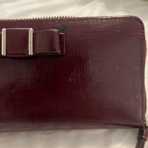 Coach wallet in red with detailed bow on the front. Some marking on the front, minor signs of wear.