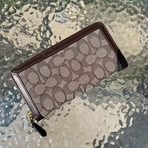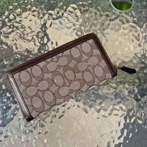 authentic coach wallet in maple Perfect condition besides 1 tiny white stain on leather and 1 tiny white stain on monogram