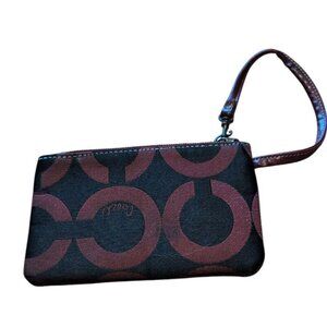 Coach Wallet Black & Red Poppy Cosmetic Bag Zip up Canvas Signature Coin Purse