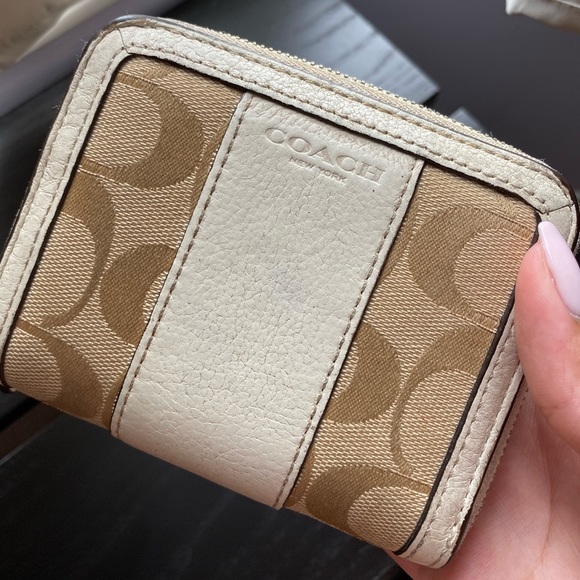 Coach Wallet Colour: White Condition: Worn but functioning perfectly