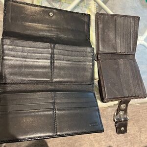 Black signature wallets has 12 CC slots, outer coin zippered space.