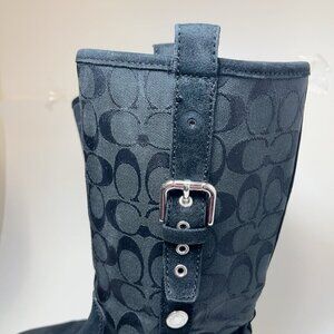 Coach Womens 7.5 Tulip Signature Leather Black Patterned Boots