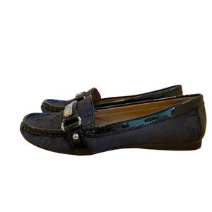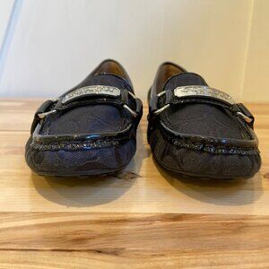 Coach Womens Felisha style Black Signature Canvas & Patent Leather Loafers Size 6