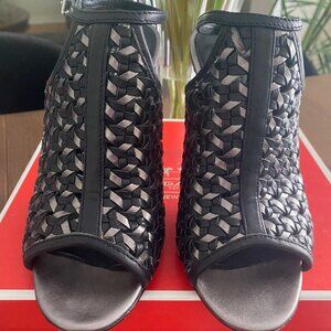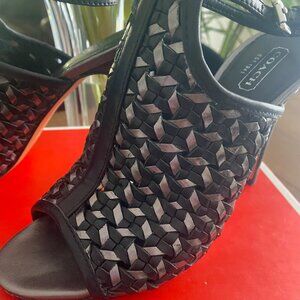These Coach beauties are special and unique. The black and pewter braided leather and ankle strap give these heels a truly unique look. They are in very good shape and have been very gently used. They are ideal for evening or cocktails.