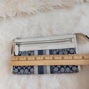 Coach Women's Navy Blue Signature Fabric Zip Up Long Wallet