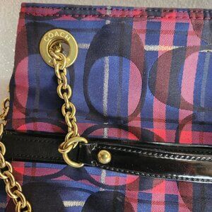 Coach Womens Poppy Tartan C Signature Pink Blue Plaid Handbag Snap Chain