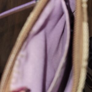 Elevate your style with the Coach Signature Wristlet. Featuring a chic purple and brown design, this wristlet is perfect for any occasion. Crafted with Coach's iconic quality, it's a must-have accessory.